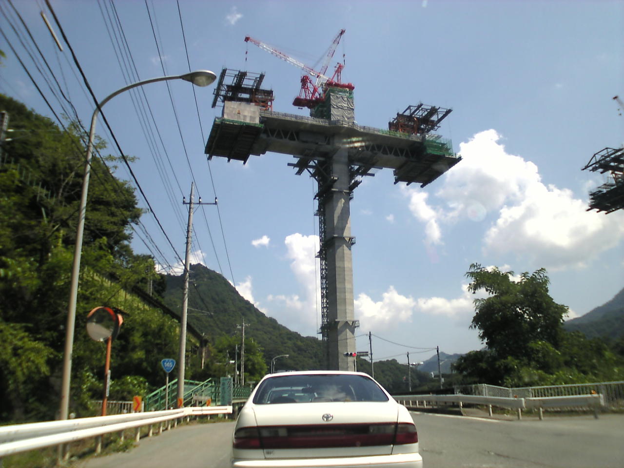 吾妻渓谷はダムの完成とともに水没。早くも弔う十字架が国道に立っています。アーメン