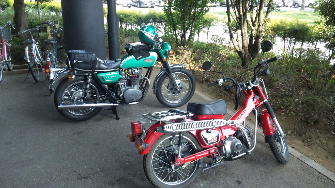 買い物カゴを買いに行ったホームセンターには、先客でヤマハXS-1が!!!