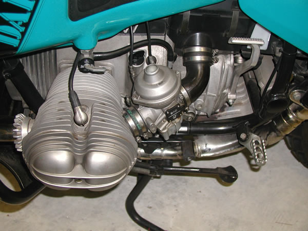 右シリンダーと左シリンダーはこんなにずれてる 頑丈なバンパーは左右共同じ位置に付いてるから 転倒すると左はガードするけど右はヘッドを削る(単なるオイルクーラーのステー) 白GSで左右共転倒して実証済み 右は気をつけましょう