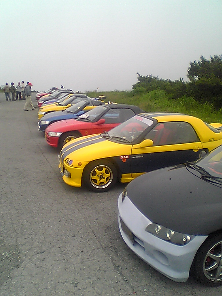 今日は箱根から帰った後通夜に参列するためビートで行った 帰り道の高速を幌を開けて走って帰ったけど久しぶりにビートの音に酔いしれた 以前記憶にあるディーノに似た音と書いたことがあるけど本当にいい音だ 特にアクセルを戻した時の軽いバックファイアー音は正にレーシングマシン 低い着座位置と頭の後ろで響くいい音 ぶん回してもスピードはたいした事無いし免許にもやさしい ビート最高 画像は箱根で出会ったビート軍団