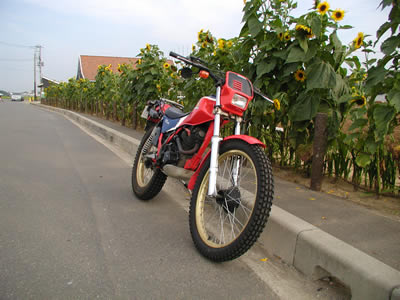 いつもは床屋の足にしか使わないけど夕涼みを兼ねて風車まで散歩の足にしてやった かつてはツーリングトライアルに使ってあげたけどなかなか出番が回ってこない
