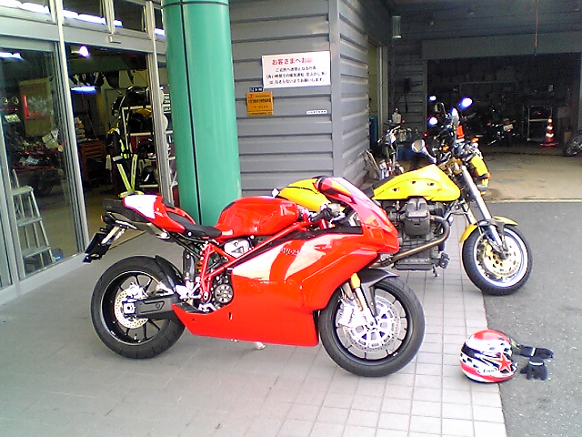 半月ぶりに見た749Rはテライオロッソのカラーも眩しく一際輝いていた 早速スタンドを外してサスを揺すってみると 硬い 明らかにOH前より硬い しぶい訳ではないから良いのだけれど