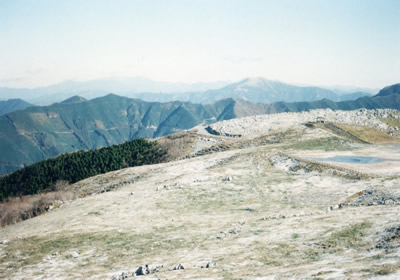 四国カルスト 一番奥に見える山が石鎚山 だったような?