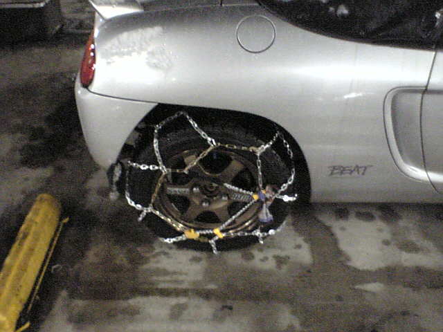 代わりに安いタイヤチェーンがあったので購入、ホームセンターから付けて帰ってきました。