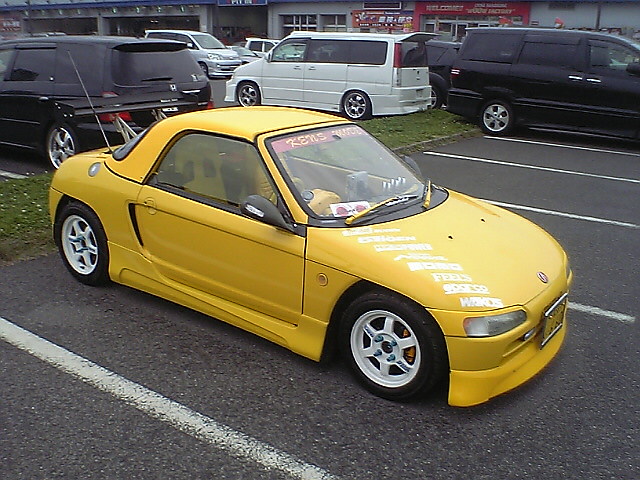 無限のサスで車高を3センチ程下げ、ホイールは我が家のビートと同じくTE37を履いている。