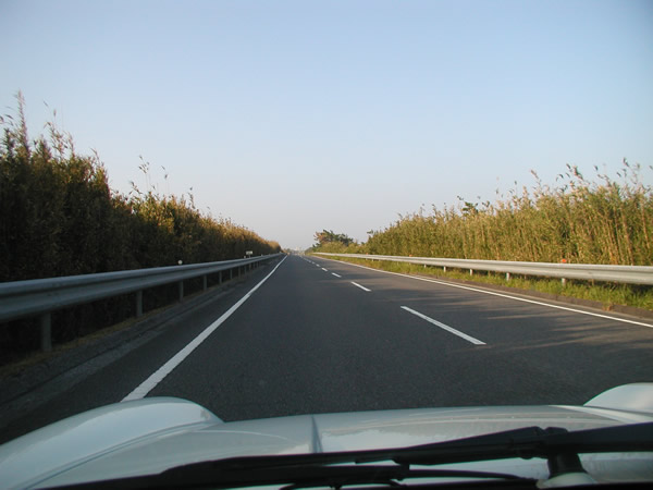 窓を全開にして、そこそこクッションの効いた「大人用チャイルドシート?」にくるまり高速道路を小1時間。