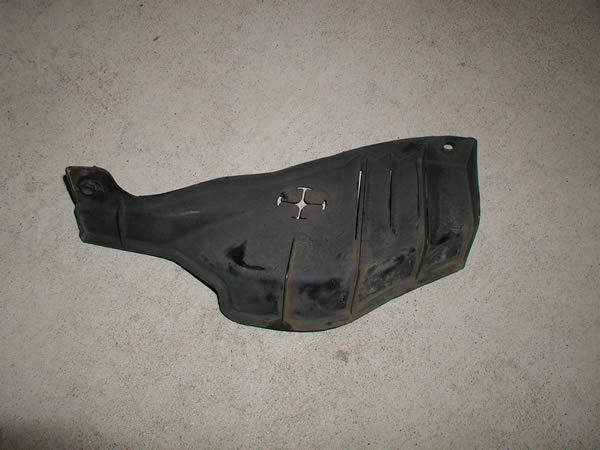 プーリーを跳ね石や泥の直噴から保護するカバーが外れていた。