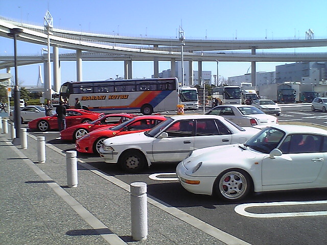 まずは湾岸線を西に向って最初のチェックポイント「大黒PA」に到着。RX8やエスプリののオフ会で賑わう中、公団前のスペースに停め一服。