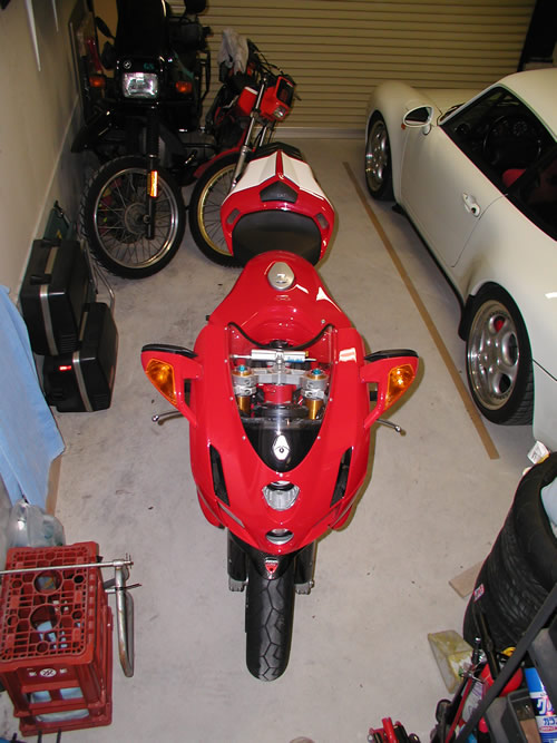 雨でうっすらと汚れたカウルを磨く。