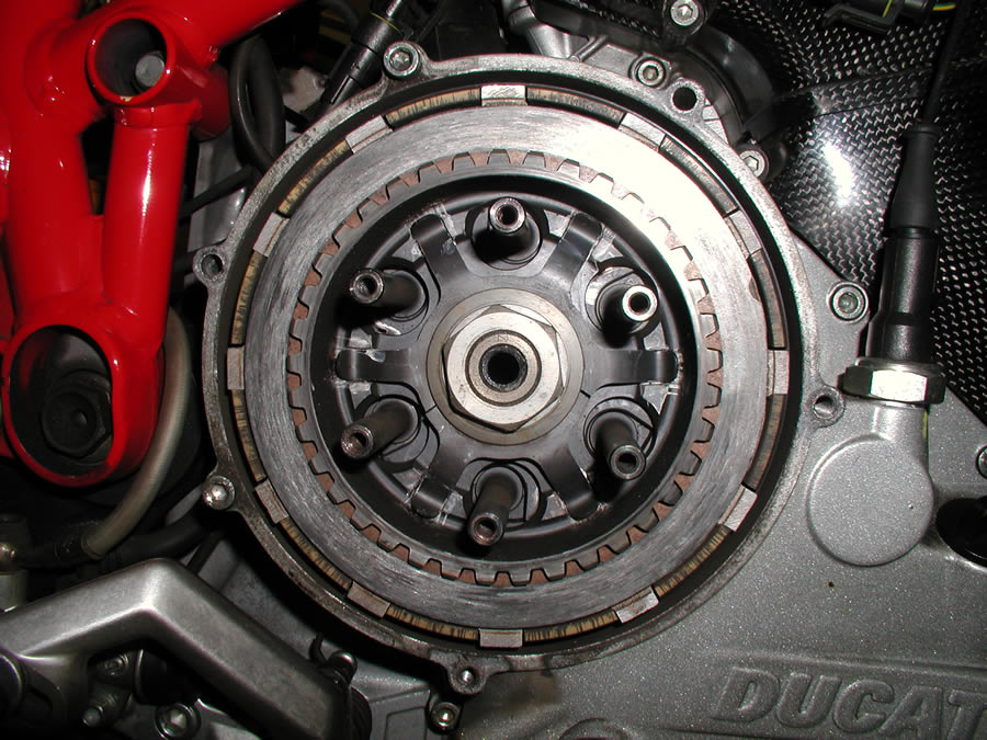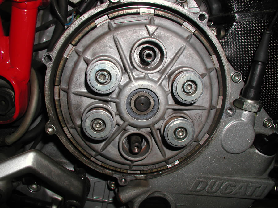 ドカティー749Rのスリッパークラッチが効きすぎてフリーギアのようになってしまった原因を探るため、プレッシャープレートを外してみた。