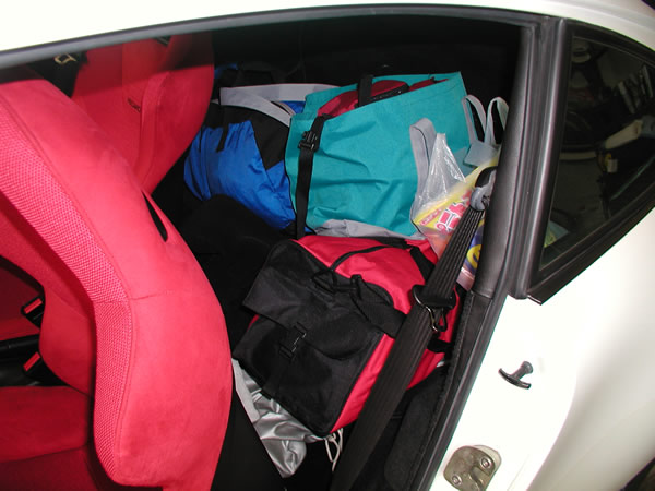 リクライニングシートに換えたRSはよほど大きな固形物でなければリアシートスペースが使えるので「スポーツカー」にしてはカーゴ能力が高い。