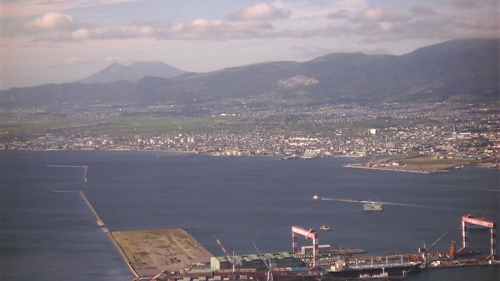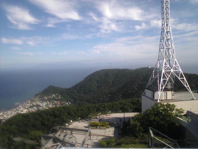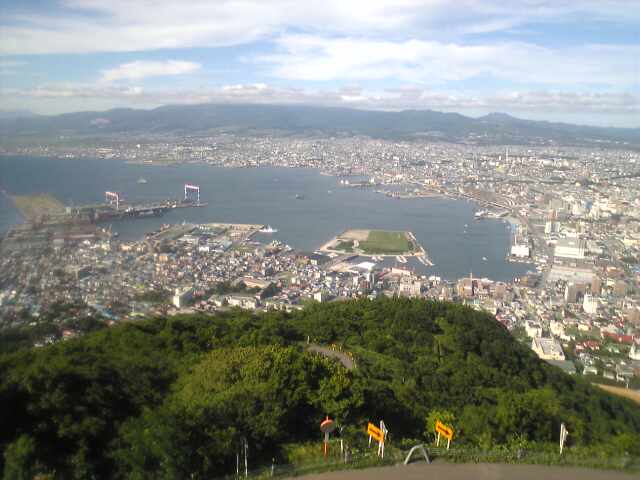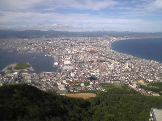函館山は快晴、青森県大間岬まで望むことができた。 夜になると一般車両は上がれない。 夜景は神戸の夜景には負ける。