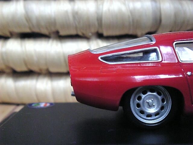 ケースから取り出した車を床に置き、顔を床に擦りつけながらザガードが作ったという美しいボディーラインを堪能していくと、なめらかなフェンダーの曲線とテールのコーダ・トロンカが空力の必然生から生まれたものであることに気づきます。