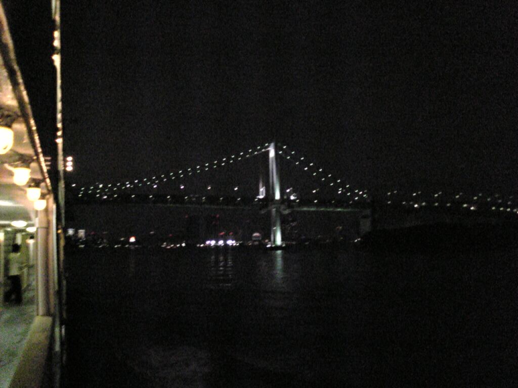 竹芝まであと僅かな夜の東京湾、サルビア丸での6時間程に及んだ航海はクライマックスを迎えます。