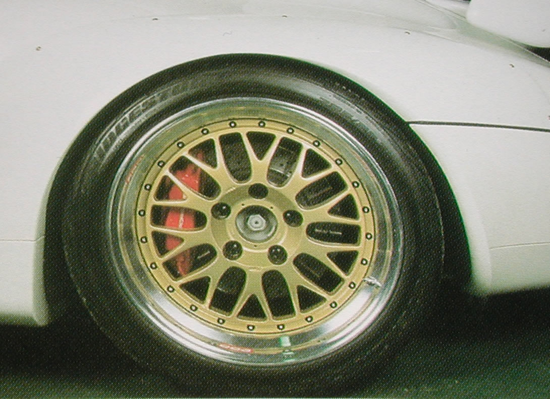 いろいろと雑誌を調べていったら、01の996カップカーがフロント8,5Jで、オフセットを稼ぐために外リムはディスクを巻き込むように少し内側に入り込んでいるようにも見えます。(そう見えているだけかもしれませんが)