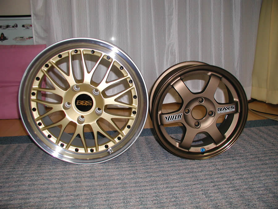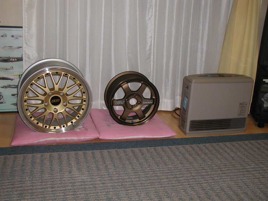 BBS RRは勿論ポルシェ用で、レイズTE37はビート用です。