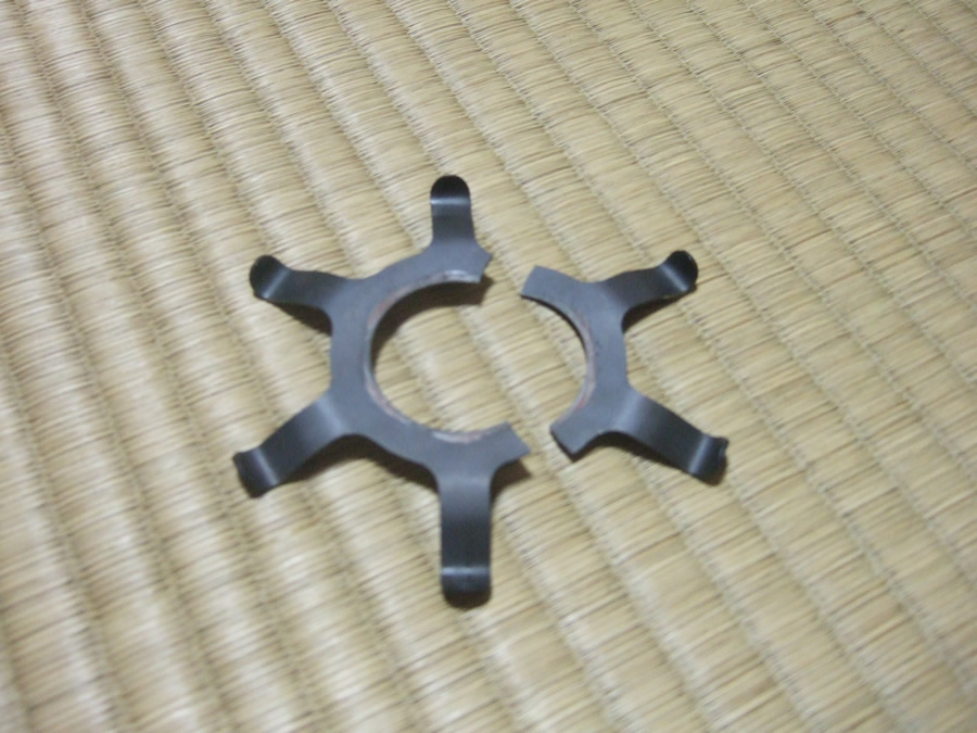 スリッパーの構造は、四輪車の機械式LSDの逆バージョンで、バックトルクが掛かったときだけ圧着力を弱めて滑らせるものですが、どれだけ圧着力を抜くかはヒトデのような形をしたスパイダースプリングが鍵を握っています。そのスプリングが破損したので、シフトダウンしたときクラッチは滑りっぱなしで、いつまでたってもバックトルクが掛からないという恐ろしい状況になっていました。