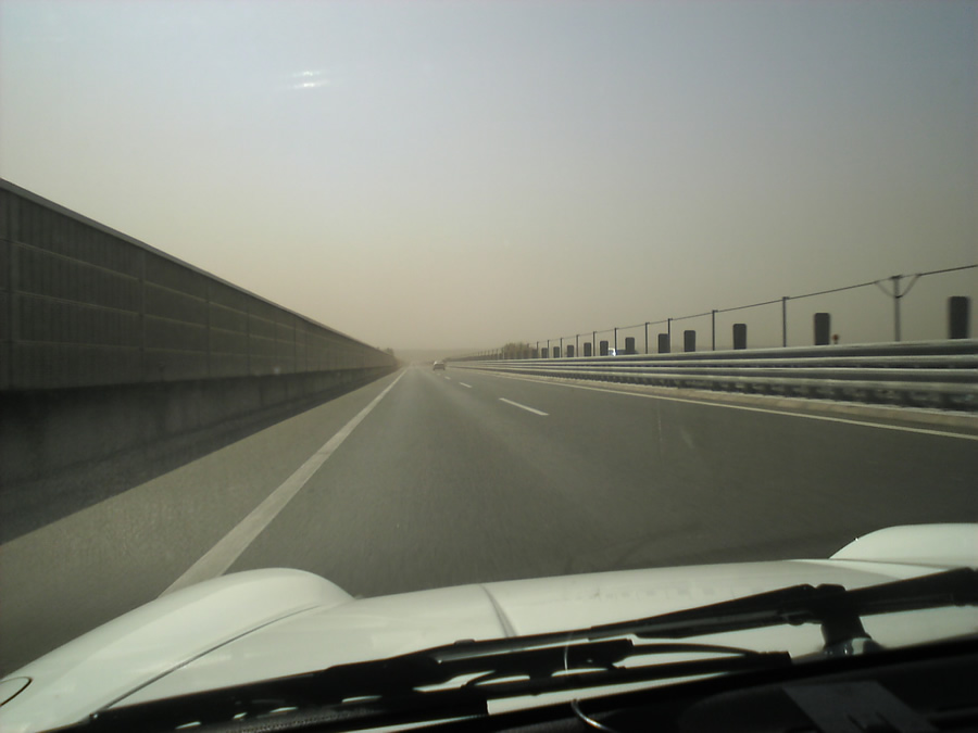 前を走る車もかすむ程です。