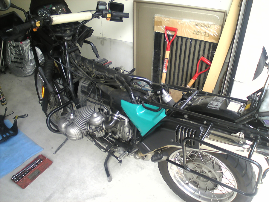 横倒しにして作業をするため、まずはタンクとバッテリーを外します。