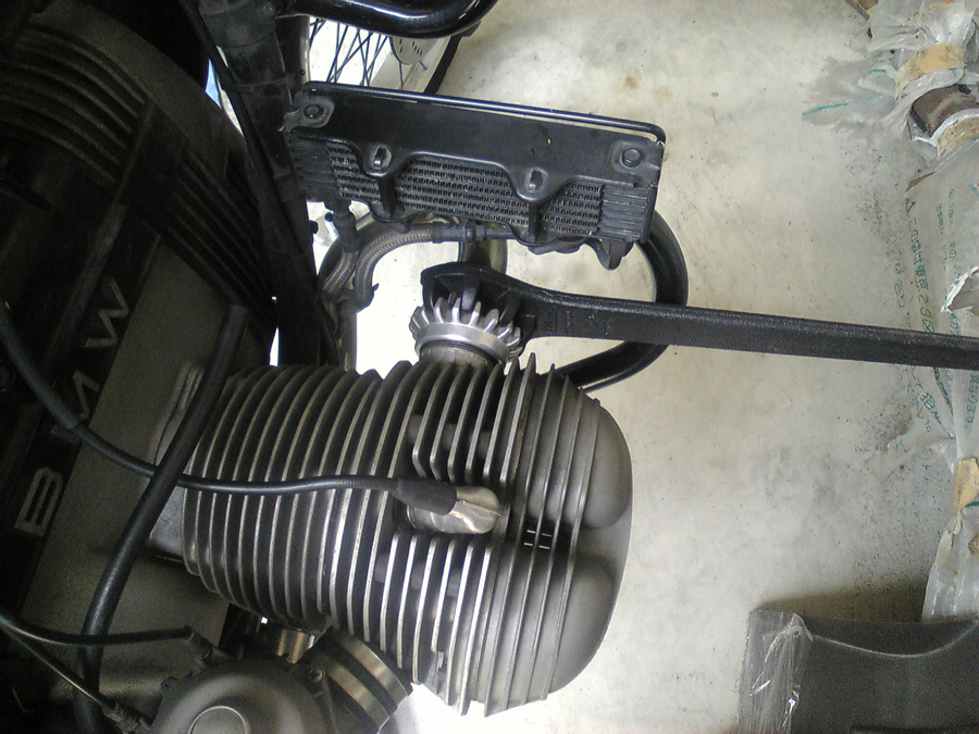 このフランジナットはシリンダーにねじ込んであるので専用工具を使って回しますが、固着しているとシリンダーのネジをかじってしまいますから要注意です。エキゾーストチャンバーはマフラーに付いたまま外しましたが、リアタイヤを外さなければチャンバーは取れません。