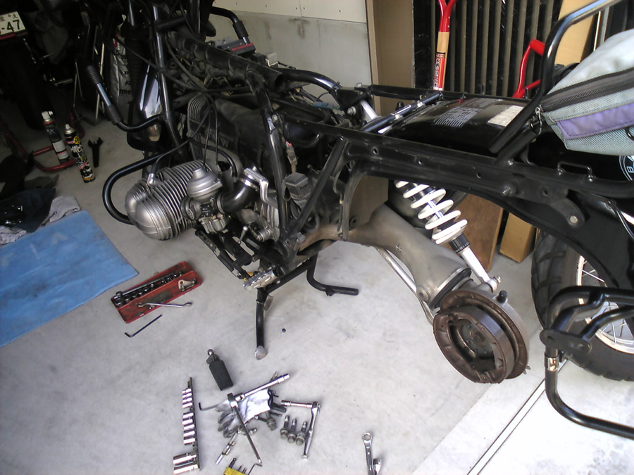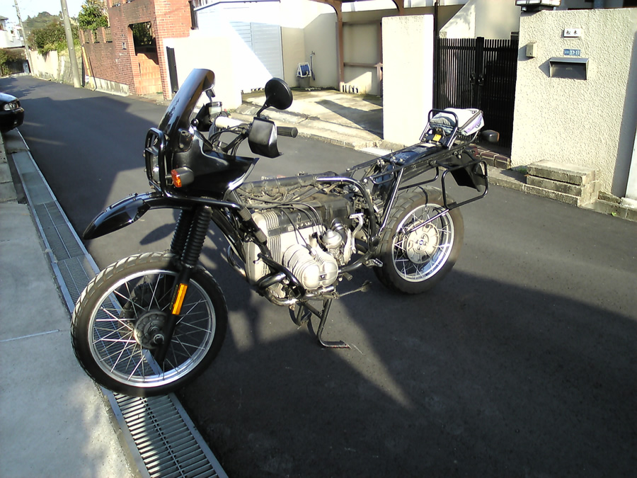 タンク・バッテリー・マフラーを外した車体は相当に軽量で、原付バイクでも取り回しているようです。