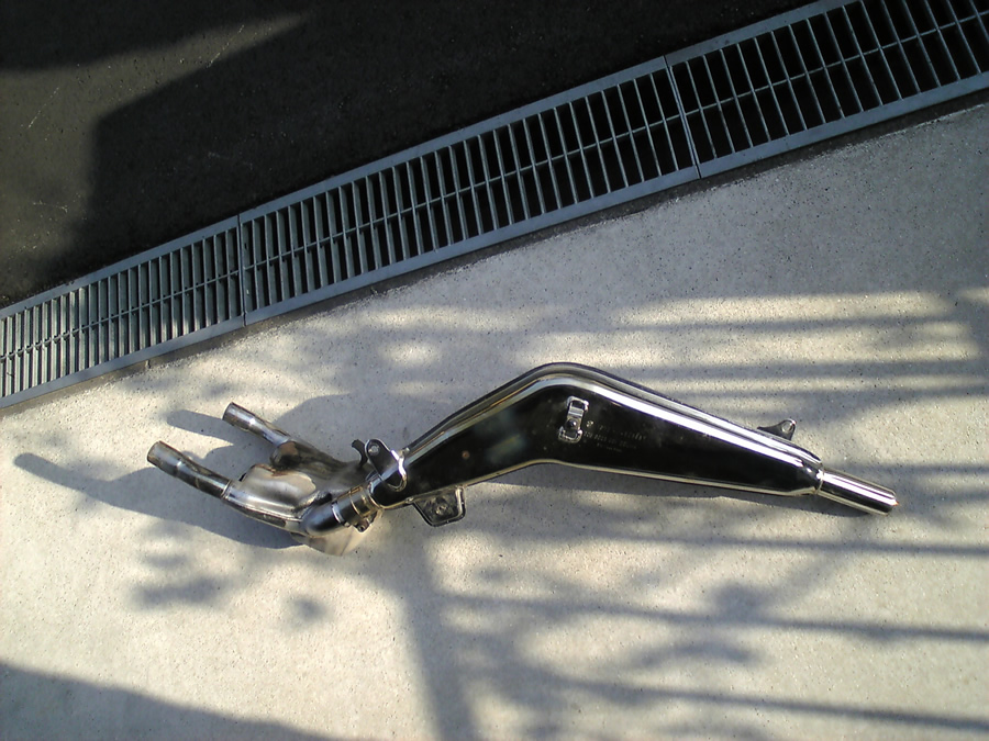 外したチャンバー付きのマフラーはステンレスでできておりかなりの重量があります。