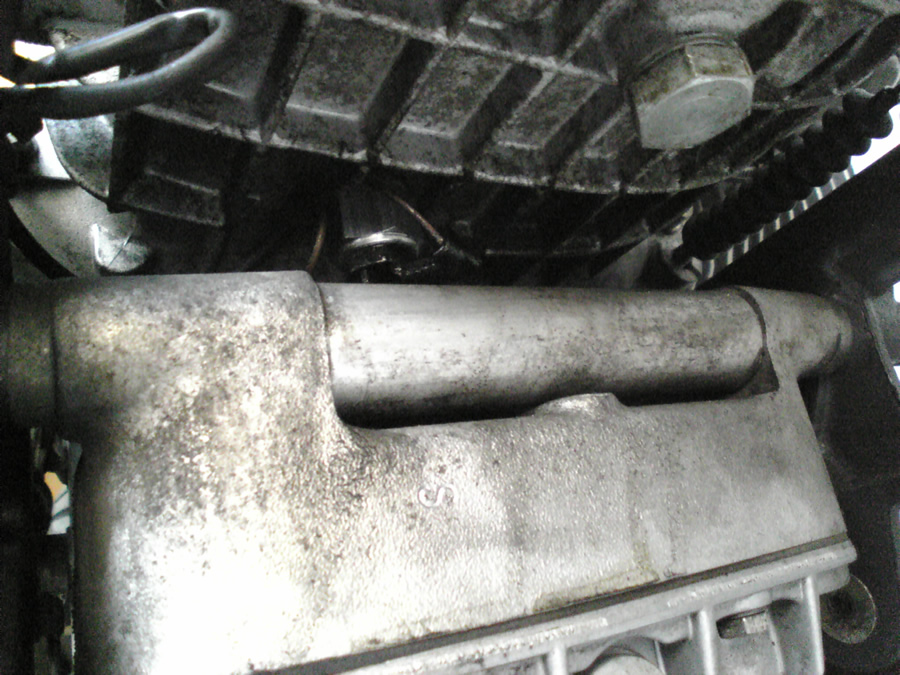 ミッションケースを下から覗いてみますが、ドレンボルトの奥に配線付きで見えるものがニュートラルスイッチです。