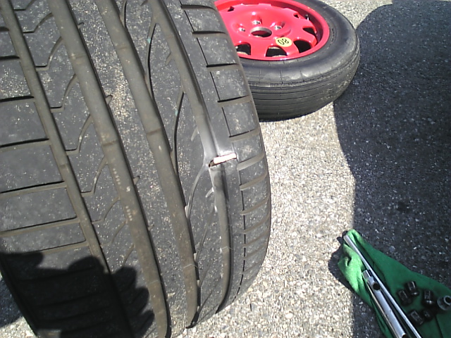 近くのタイヤ館で診てもらうと、やはり傷口は広く、交換した方が良いでしょうとの事で、バースト経験がある私としては考えるでもなく交換に決定しました。