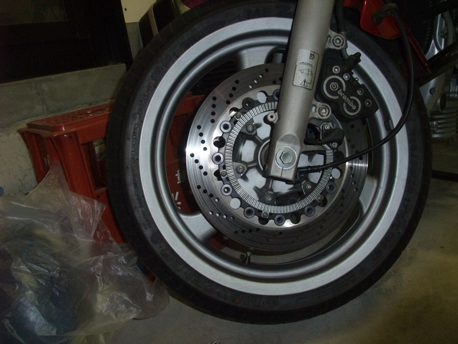 ブレンボ製12ピンのフローティングディスクは、今では8万円以上する高価なパーツとなってしまいました。