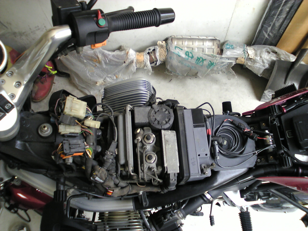 ABSユニットやモトロニックがぎっしり詰め込まれたタンクの裏側です。
