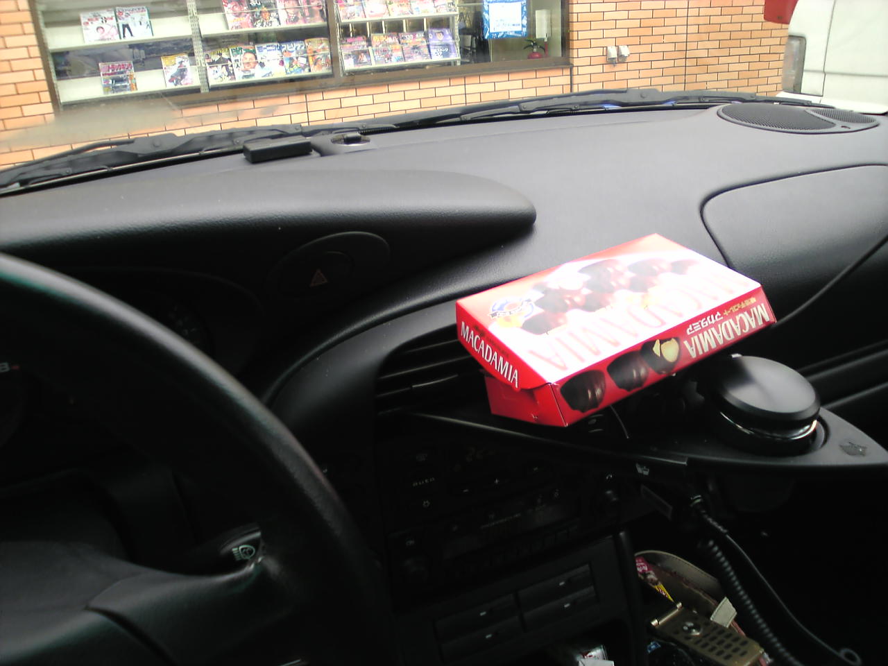 夏車!!食事中に柔らかくなってしまったチョコをエアコン吹き出し口で冷やし硬くします。