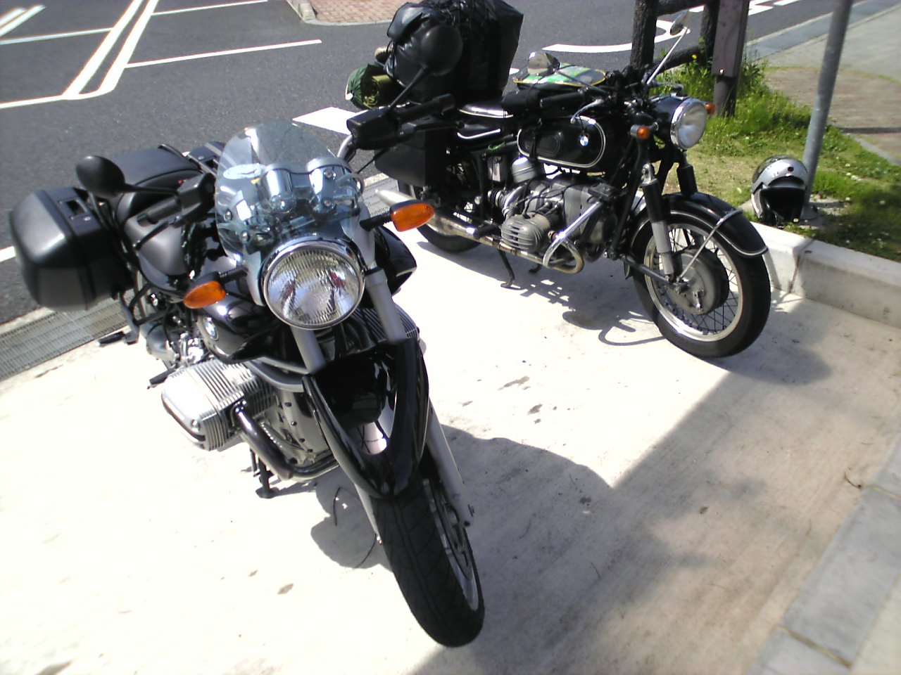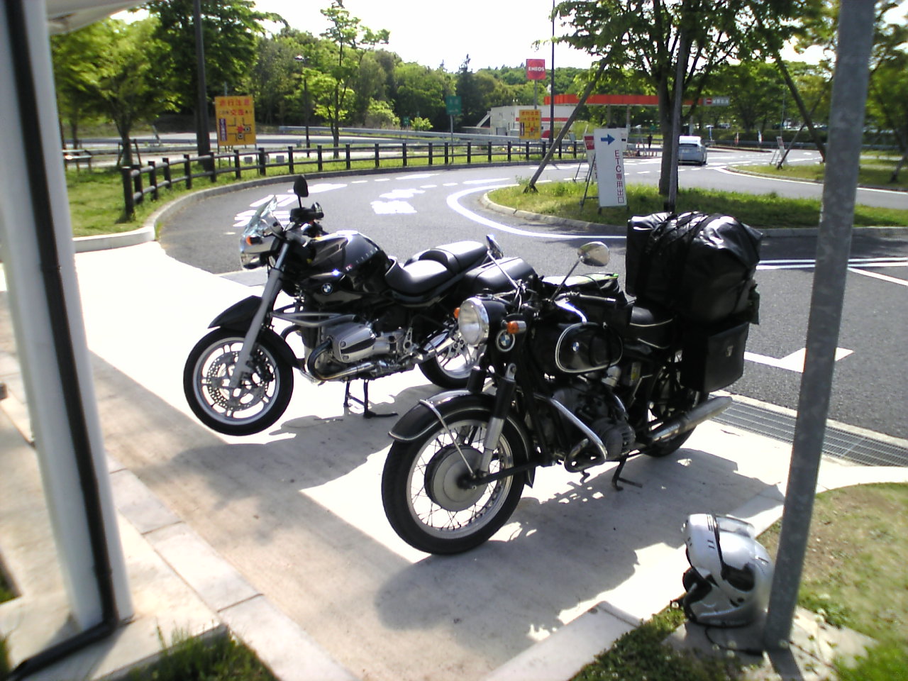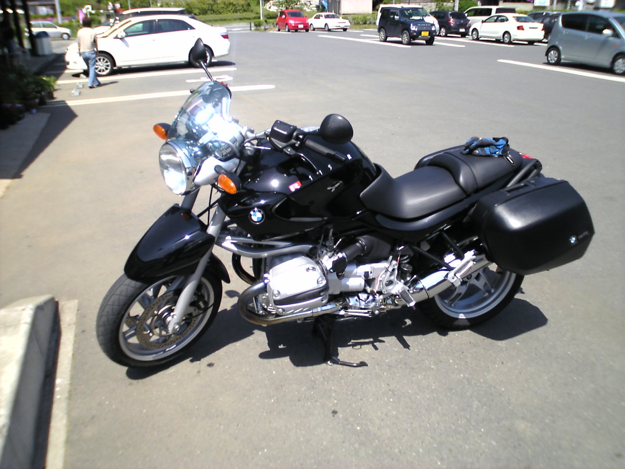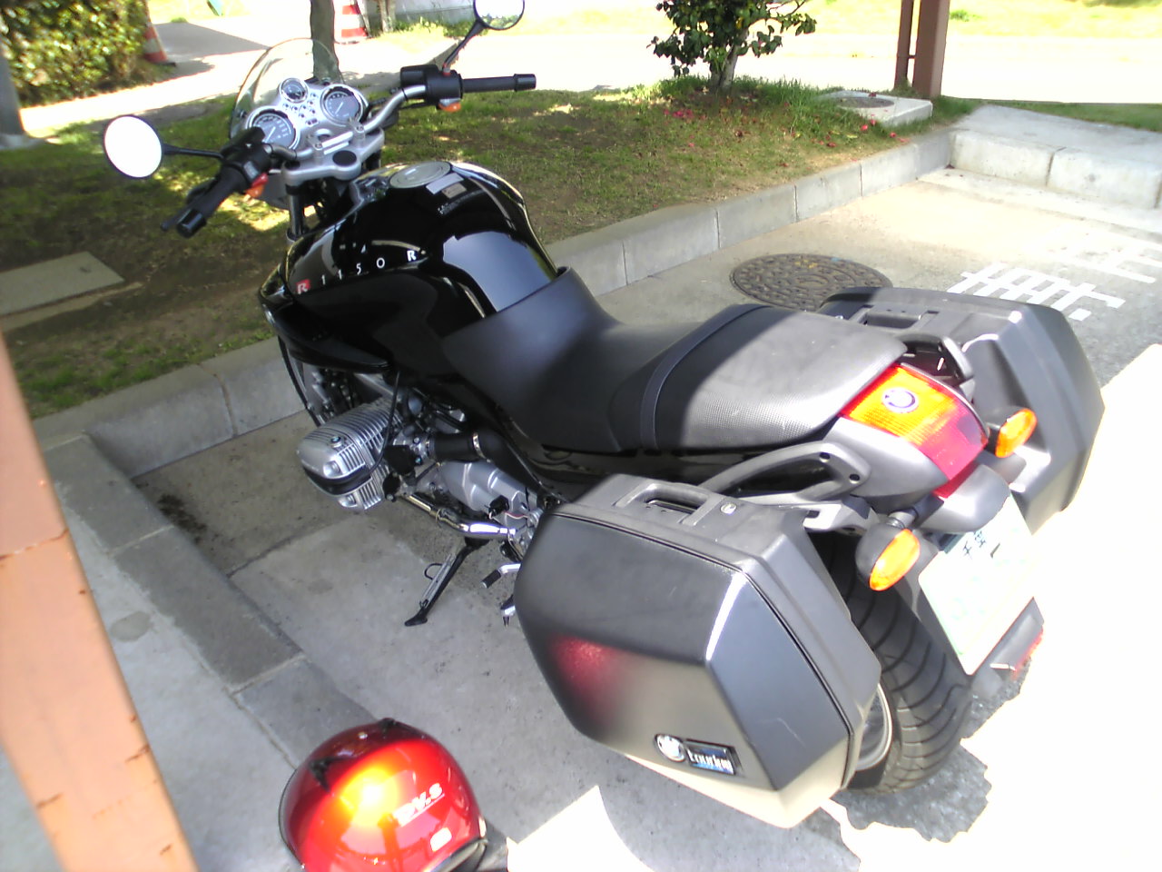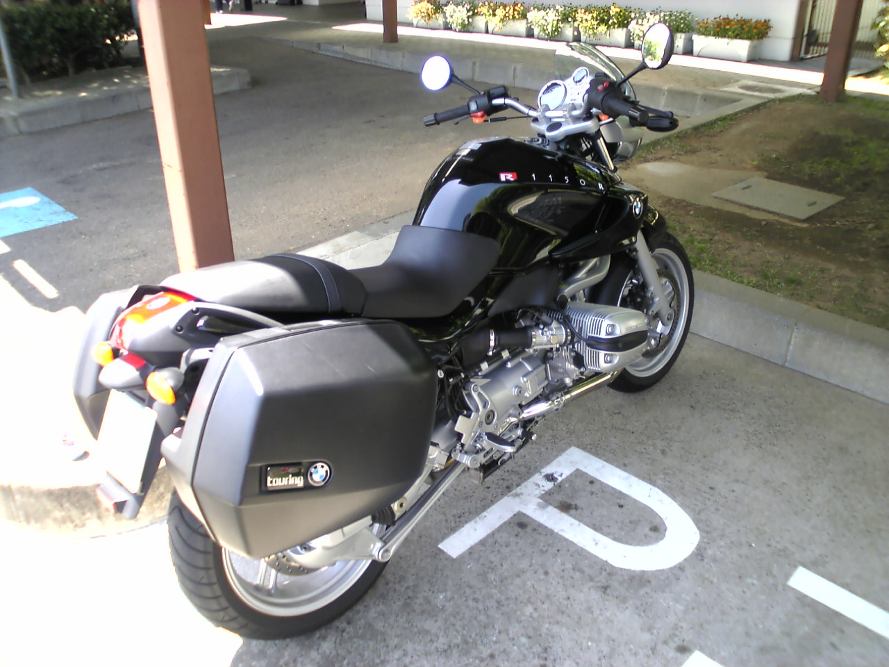 R1150RはGSと同じくアップマフラーのため左側パニアケースは内側が大きくえぐられています
